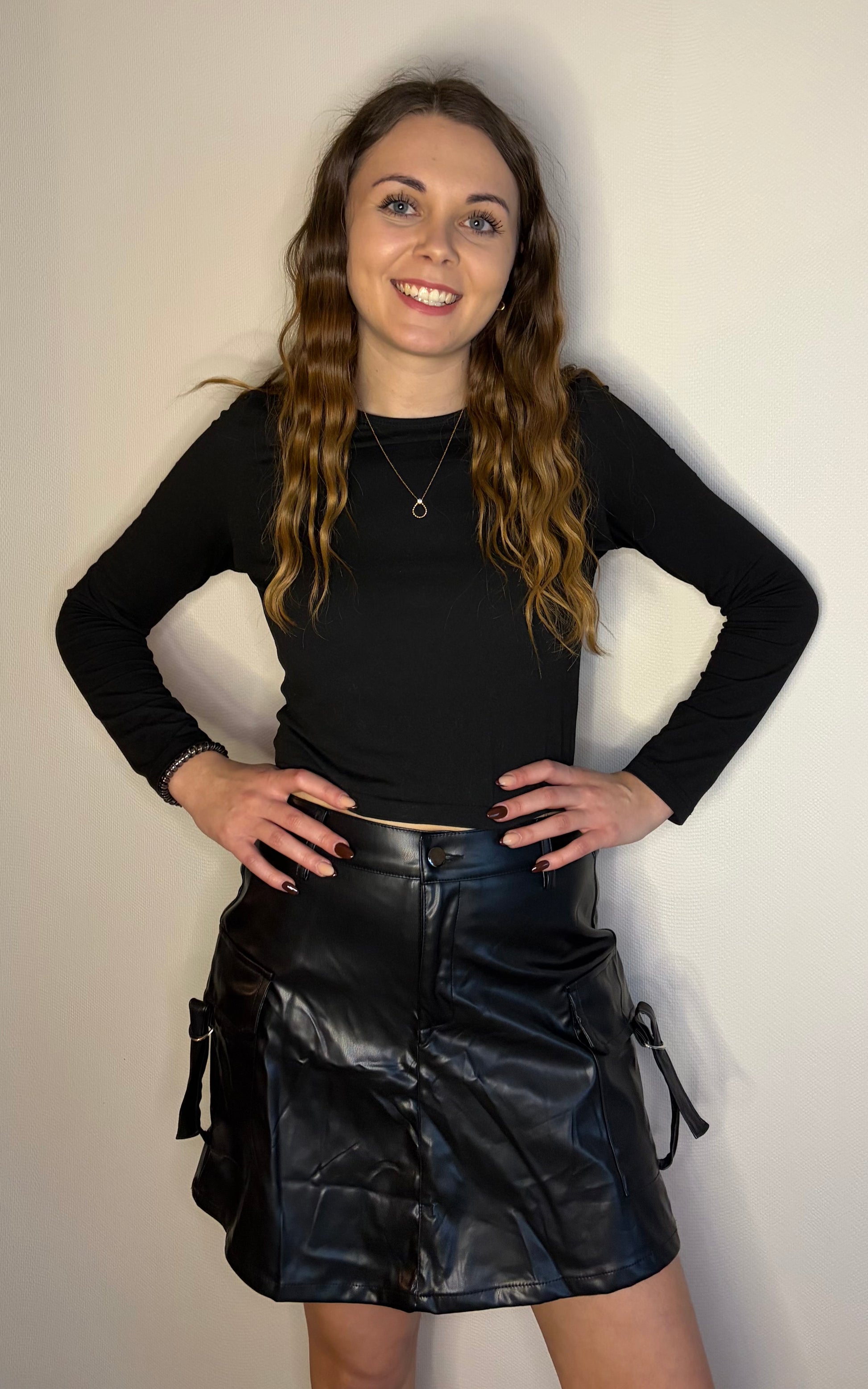 Jupe short similicuir noir avec élastique à la taille